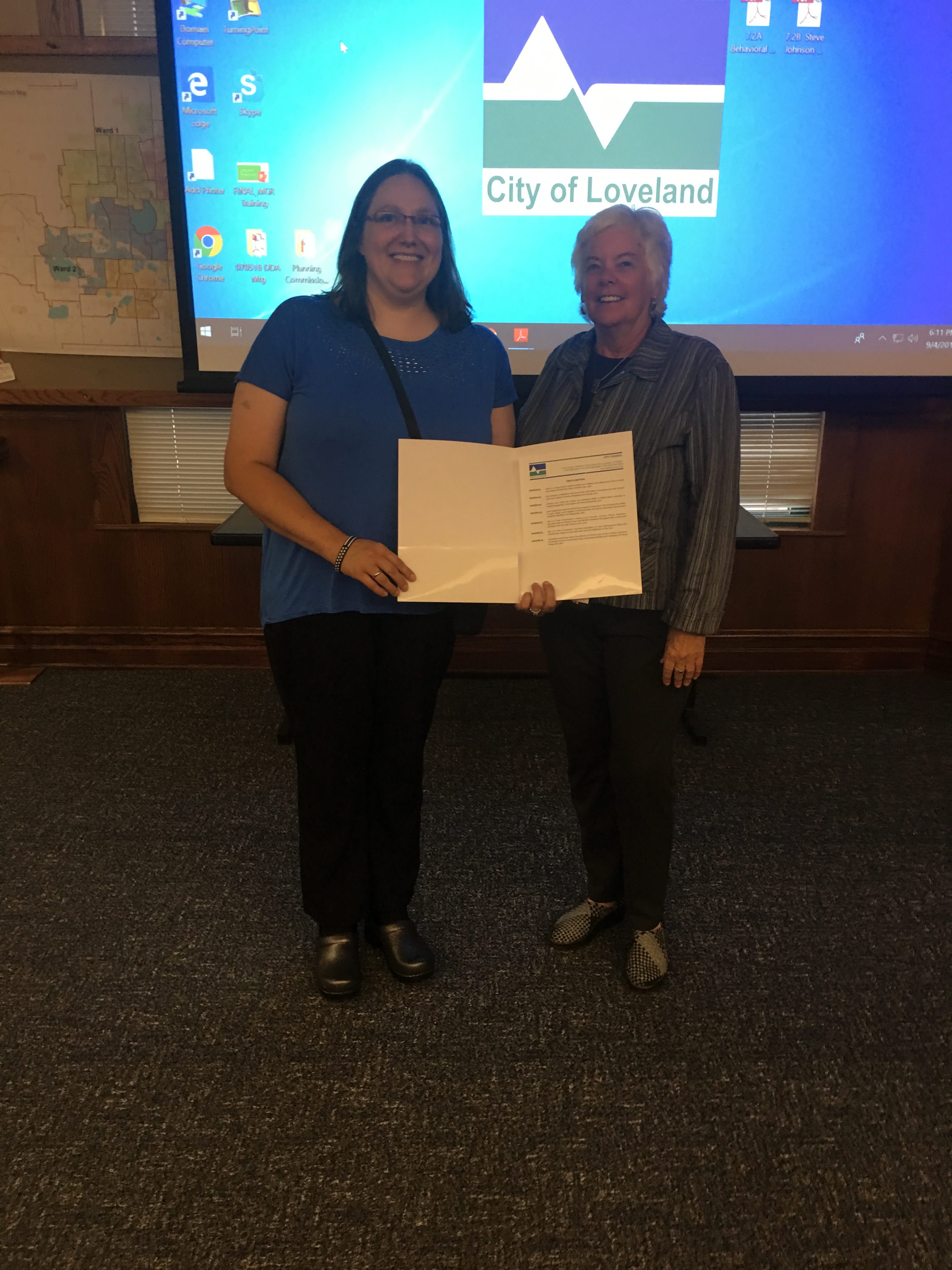 - Sharon Leeper receives the Loveland, CA, proclamation