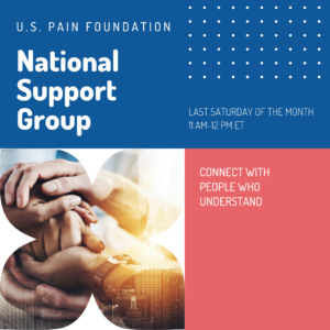 National chronic pain support group: Fourth Thursdays This is an online support group open to anyone with ... 26 Mar 1:00 pm - 2:30 pm